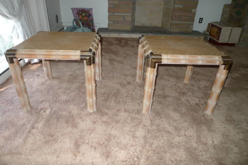 Pair of Hollywood Regency faux bamboo w/brass fittings end tables 25x25x21 SOLD