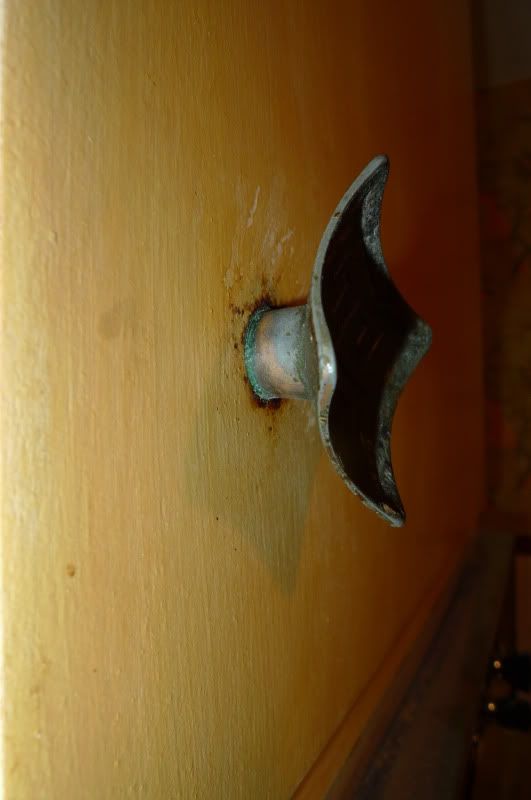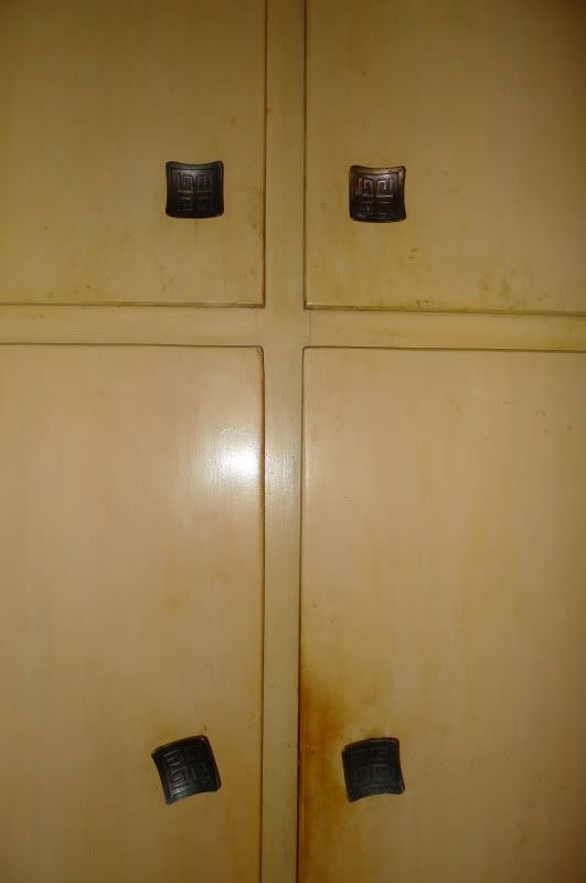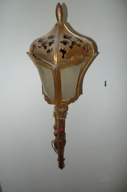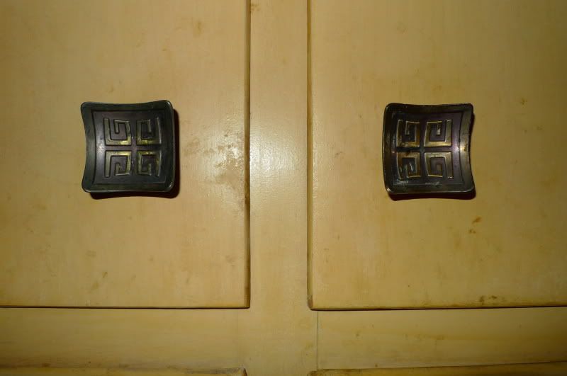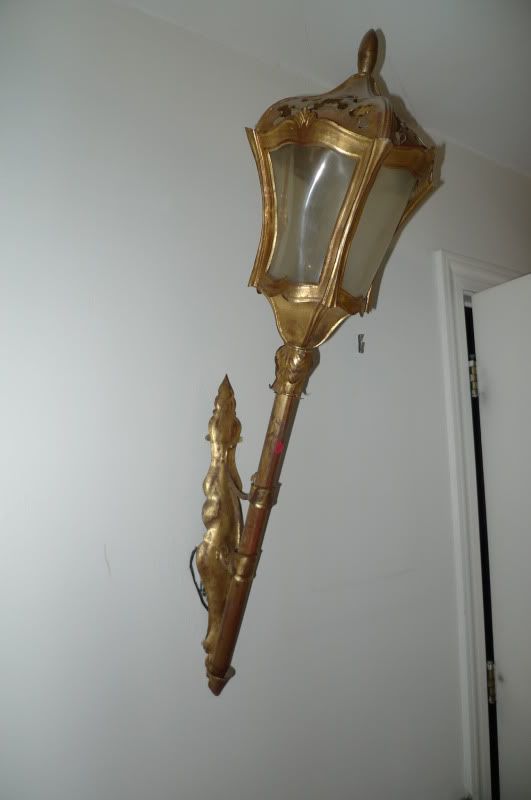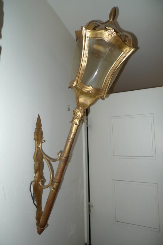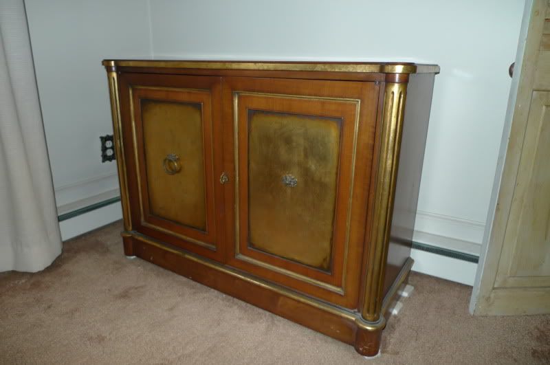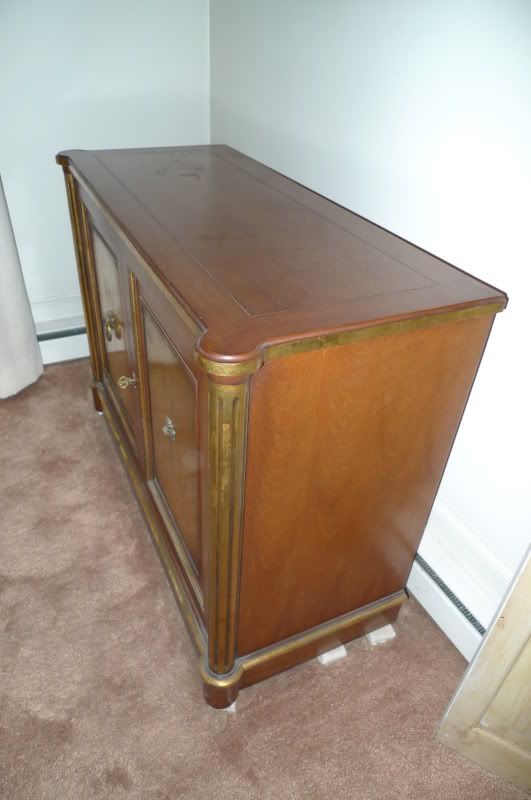 Hollywood Regency gold leafed buffet / sideboard / bar cabinet (one door missing ring pull) 39 x 28 x 16 $45