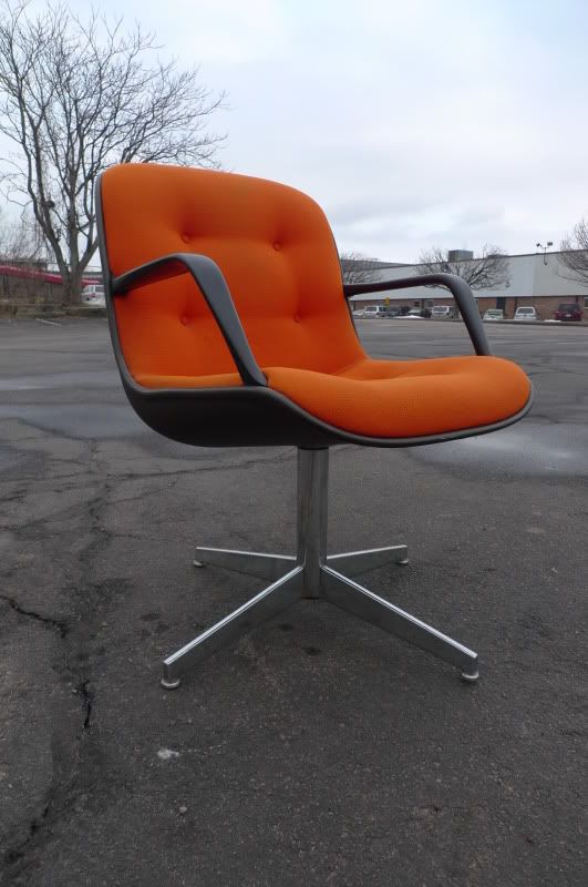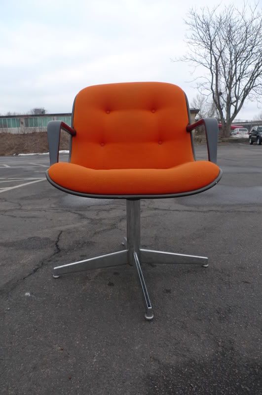 (SOLD) Pair of Retro Orange Black & Chrome Swivel Steelcase Chairs